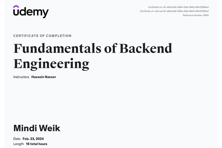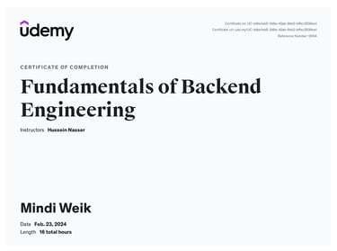 I recently completed the Fundamentals of Backend Engineering course on Udemy and shared this accomplishment on LinkedIn!